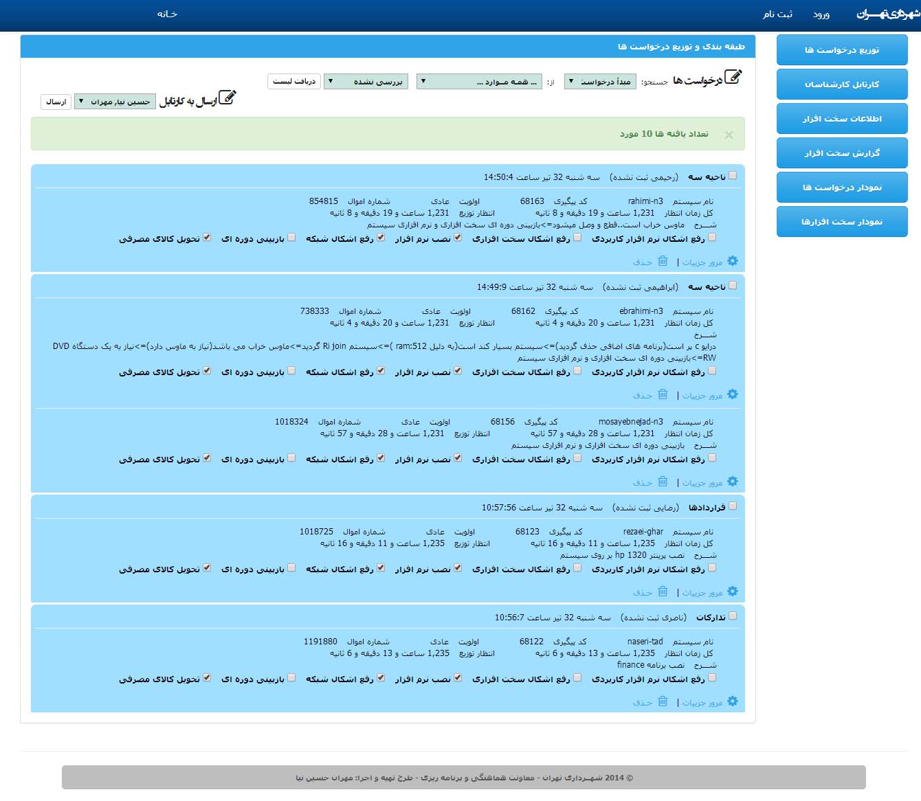 من در اولین طرح تحلیل گردش کار، State های متفاوتی را برای ثبت یک درخواست خدمات و سرویس در نظر گرفتم که مهم ترین هدف من علاوه بر امکان ایجاد کارتابل های کاملا اختصاصی برای سطوح دسترسی متفاوت، امکان اندازه گیری زمان انتظار هر درخواست در State های مختلف فراهم باشد . این موضوع بسیار از جانب مدیران سطوح بالاتر مورد استقبال واقع شد و در نسخه های بعدی به طور دقیق تری امکان ایجاد State های مکمل جهت افزایش دقت در پروسه ارائه سرویس را فراهم خواهد کرد .