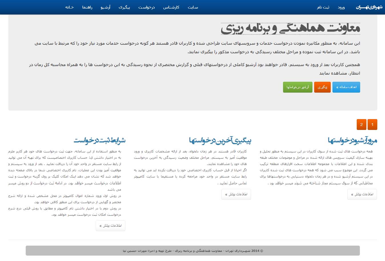 پس از گذشت سه ماه از نصب و اجرای موفقیت آمیز سامانه مانیتورینگ ، داشبورد و Help desk شهرداری منظقه شش، و در خلال رصد دقیق قسمتهای مختلف برنامه، دومین نسخه این نرم افزار با ارتقا به ASP .NET MVC 5 به پایان رسید .