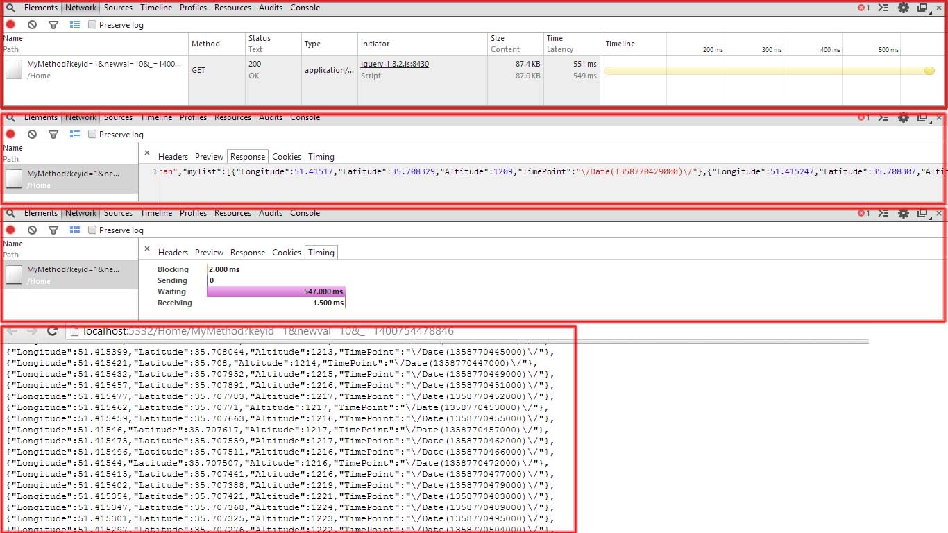 8- در صورت استفاده از Javascript یا ترجیحا JQuery امکان ارسال Asynchronous Get Request با استفاده از تکنولوژی AJAX وجود دارد که مثالهایی از آن در ادامه ارائه خواهد شد . در JQuery متدهای get و getJSON و getScript و load به همین منظور تدارک دیده شده اند .